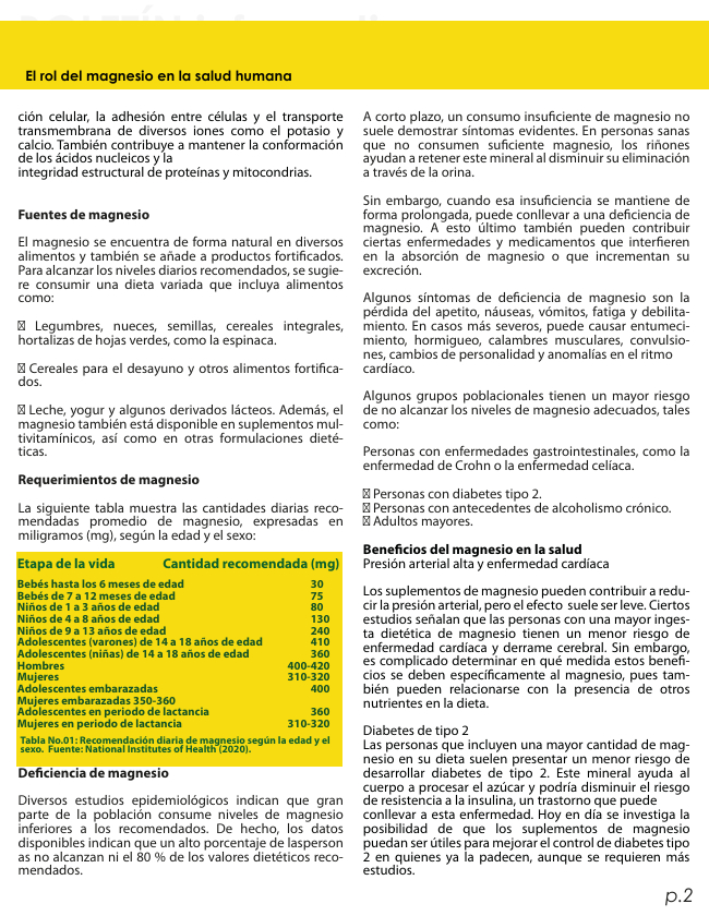 Boletín No.65 - El rol del magensio en la salud humana